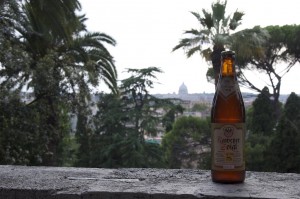 In der Villa Borghese haben wir am Nachmittag Abkühlung gesucht und gefunden, allerdings nicht mit dem lauwarmen Zoigl, da hier vor herrlicher Kulisse posiert hat. Am Abend sind wir beide dann noch mit unserer Bierflasche zum Petersplatz gezogen, um eine nächtliche Aufnahme vor dem Petersdom zu machen.